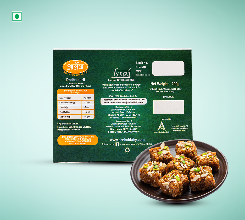 Arlys Dodha Barfi Traditional Indian sweet prepared with natural ingredients