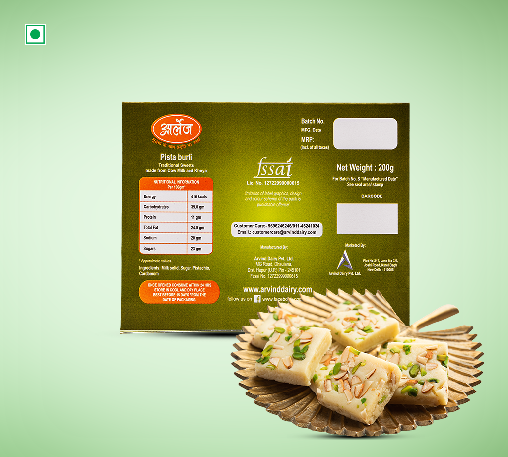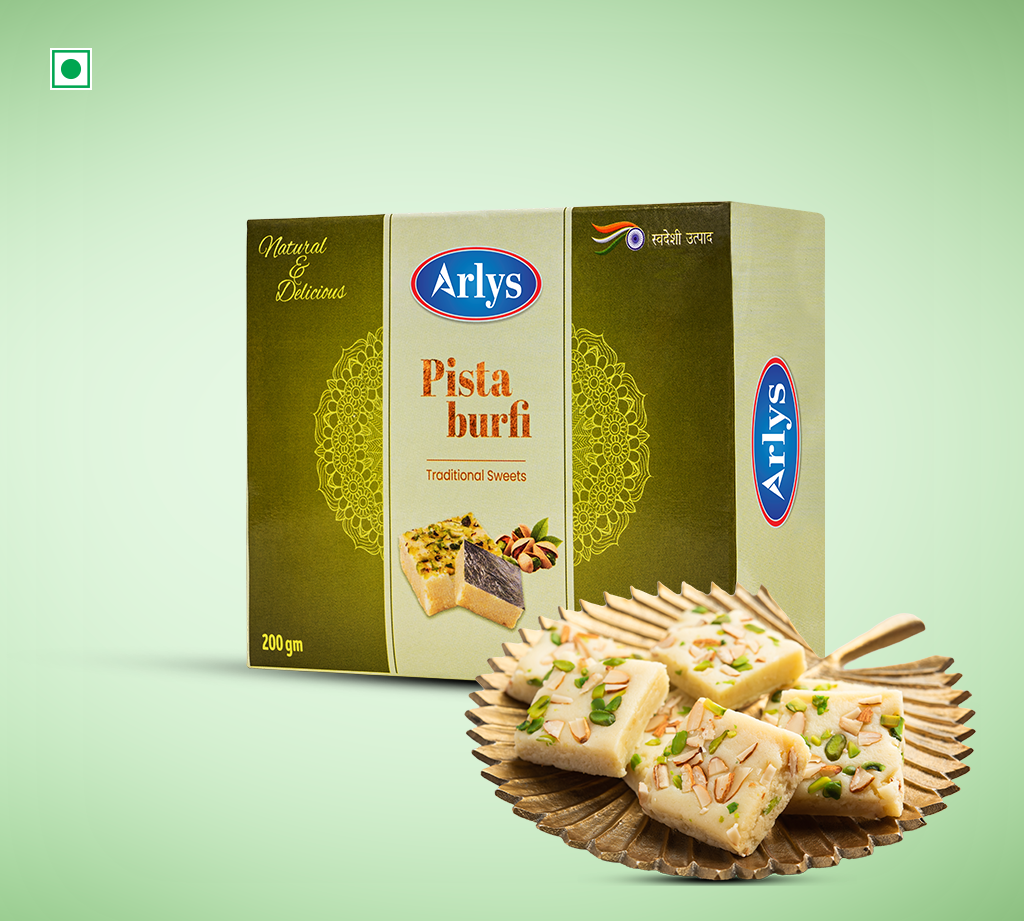 Traditional Indian Pista Barfi made with the goodness of Arlys Cow Milk and khoya.