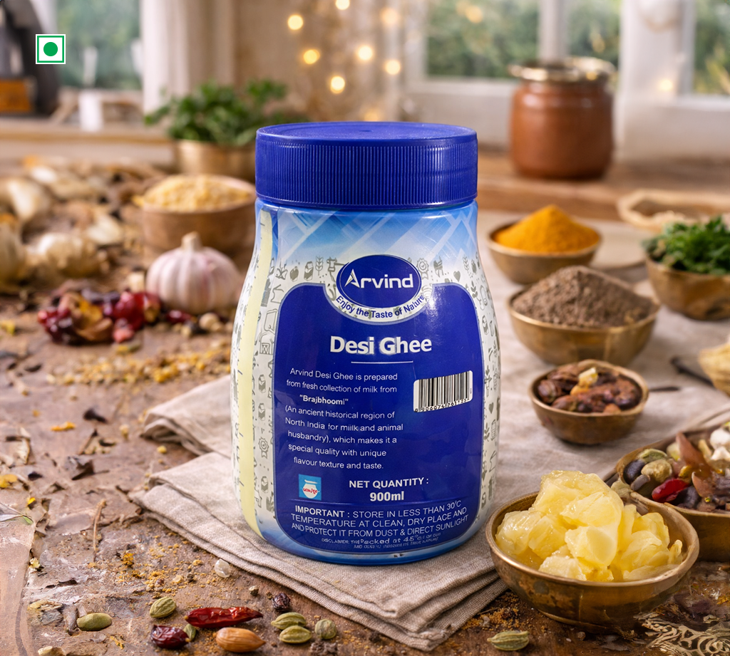 Original price was: ₹190.00.₹185.00Current price is: ₹185.00.Arvind Desi Ghee 900ml Jar