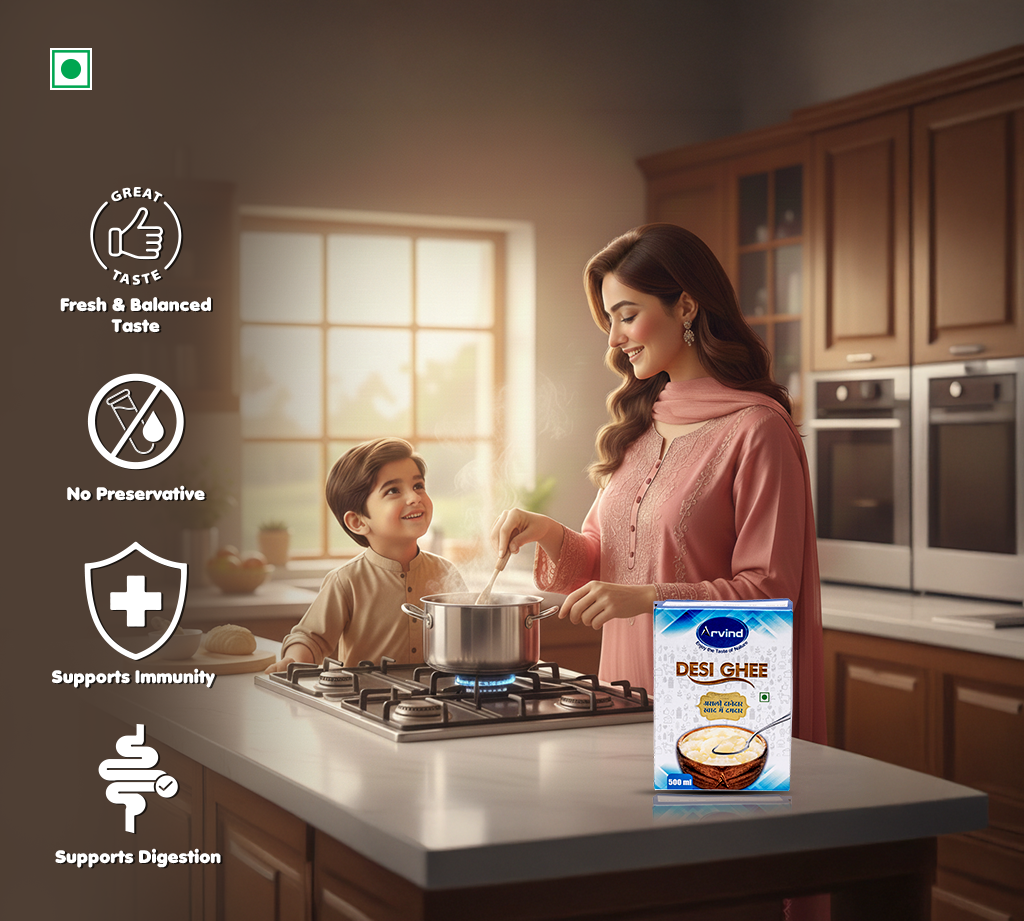 Original price was: ₹670.00.₹619.00Current price is: ₹619.00.Arvind Desi Ghee Tetra pack 900 ML