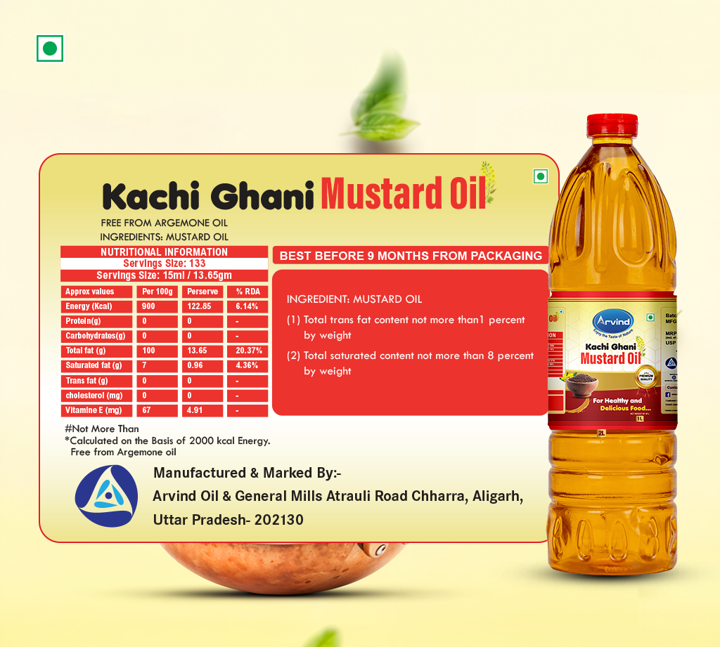 Arvind Mustard Oil is a high-quality cooking oil that is renowned for its purity, flavorful taste, and various health advantages. Derived from meticulously chosen mustard seeds, this oil is widely preferred in households due to its unique flavor and adaptability in various culinary uses.