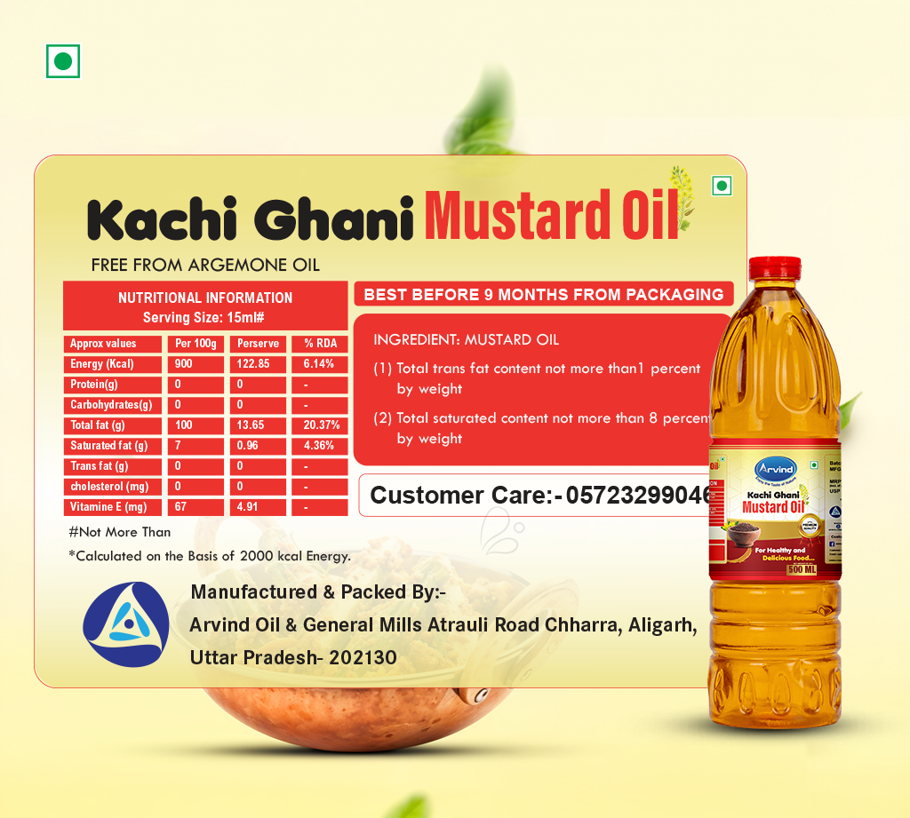 Arvind Mustard Oil is a high-quality cooking oil that is renowned for its purity, flavorful taste, and various health advantages. Derived from meticulously chosen mustard seeds, this oil is widely preferred in households due to its unique flavor and adaptability in various culinary uses.